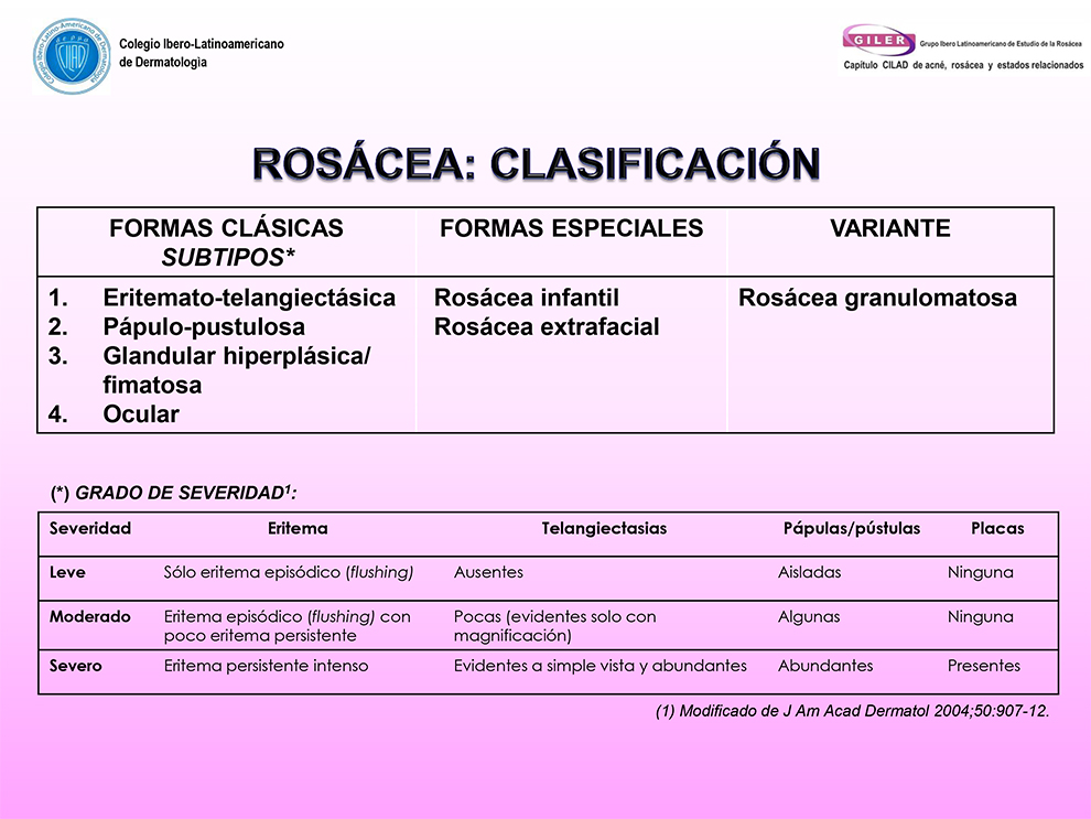 Presentamos la clasificación de Rosácea propuesta por el grupo GILER (Grupo CILAD de Acné, Rosácea y Estados Relacionados)