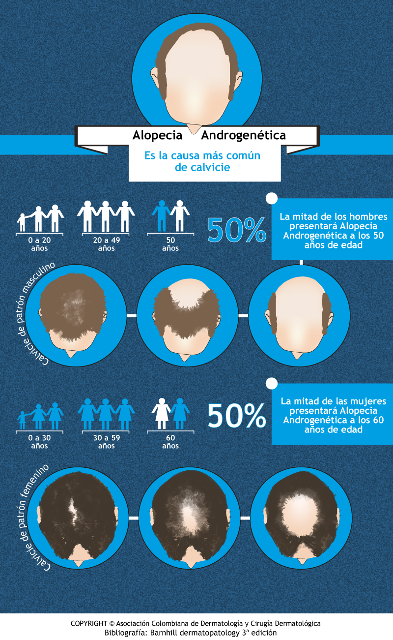 Es más frecuente en hombres y muy rara en mujeres. Es la causa más común de caída del pelo en el hombre, su presencia precoz comienza a los 16 años de edad pero por lo general inicia después de los 25 años de edad, tiene un componente genético importante... Leer artículo completo