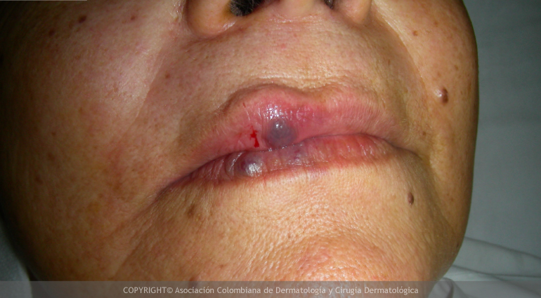 Es una lesión vascular benigna, de color azul oscuro- violeta, suave al tacto, asintomática, es decir, por sí mismas producen dolor ni picazón excepto si se encuentran en sitios de roce. Ocurre por la dilatación anormal de una vénula (vena de pequeño tamaño). Se localiza frecuentemente en el labio inferior y en las orejas. Se desconoce la causa, pero se ha vinculado con la exposición solar.