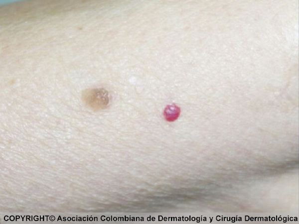 Son lesiones redondeadas de color rojo, benignas, que no se transforman a cáncer y que en ocasiones tienen un carácter familiar. Aparecen frecuentemente en personas adultas y se localizan en espalda, cuello y rostro, en forma de manchas rojas de 2 a 6 mm de diámetro.