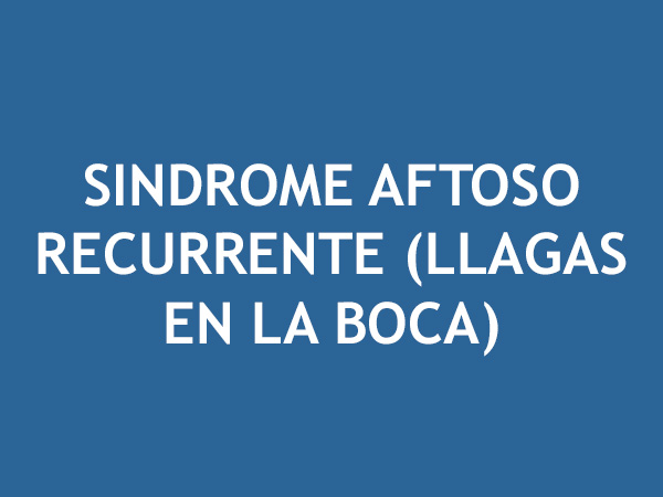 El síndrome aftoso recurrente corresponde a la aparición de úlceras (llagas) repetidas y dolorosas localizadas dentro de la boca y que afectan hasta al 30% de la población.