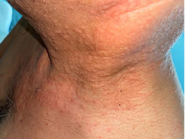 Asiste a valoración por dermatología en donde se solicita perfíl inmunoreumatológico,hemograma, uroanálisis, TSH y PCR con resultados normales. Se consideran como diagnósticos de trabajo mucinosis cutánea vs líquen mixedematoso. Se...