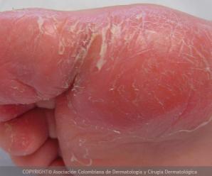 Se manifiesta por piel enrojecida, brillante y seca que...