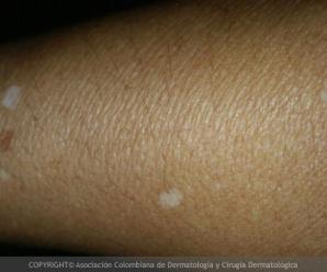 Se caracteriza por la aparición de manchas blancas como porcelana de 2- 5 mm de diámetro, que aumentan en cantidad con la edad. Generalmente aparecen en piel que ha sido expuesta mucho tiempo al sol y se piensa que puede ser parte del...